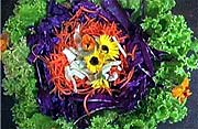 ser feita com espinafre, alface, cogumelos, uvas passas e a flor
