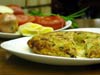 Pescada de MinasFil? de pescada branca ? milanesa gratinada com queijo minas, coberta com molho de camar?o ao suco de tomate, com arroz de taioba e peda?os de angu frito. R$ 21,80 para duas pessoas.