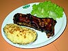 Country RibO Country Rib ? a costeleta de porco assada com o molho barbacue, acompanhada de uma batata recheada com bacon e catupiry e a alface americana. R$ 16,50 para uma pessoa.