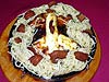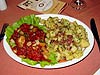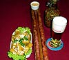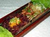 La?ada de Ling?i?aLing?i?a bovina, acompanhada de molho picante e polenta crocante, salpicada com queijo do tipo parmes?o. A ling?i?a ? feita com a ponta de costela temperada (defumada) ficando mais apurada e mais leve. R$ 13,90 para duas pessoas.