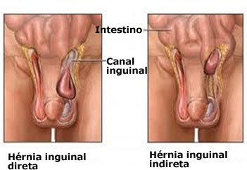 Existem dois tipos de hérnia inguinal, a direta e a indireta. A diferenciação do tipo de hérnia inguinal, direta ou indireta, não tem importância no momento da consulta porque o tratamento é semelhante para os dois tipos.