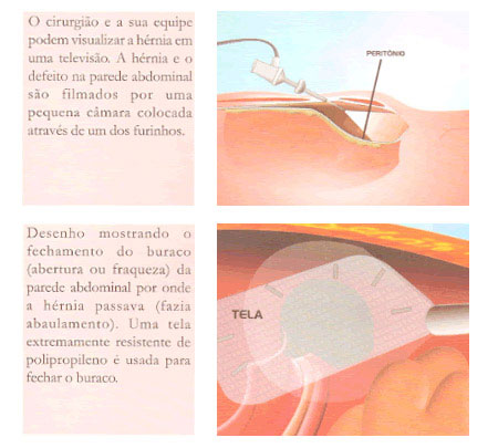A cirurgia é feita da seguinte forma: o buraco da hérnia é recoberto com uma tela sintética, que simplesmente cobre o espaço em que havia fraqueza do tecido abdominal. Trata-se de uma técnica indolor que reduziu drasticamente os índices de retorno das hérnias inguinais para 1 em cada 2000 casos operados, o que é considerado baixíssimo. É feita com anestesia local não requer internação hospitalar. O paciente é operado, levanta e vai embora para casa. Recomenda-se evitar esforços físicos pesados nos 3 primeiros meses de recuperação, mas, a cicatrização total ocorre apenas 6 meses após o procedimento. O paciente também pode ter relações sexuais 15 dias após a cirurgia, mas com cautela. Entretanto, esse período depende do caso e do estado geral de saúde do paciente, por isso, atenha-se às especificações do seu médico.