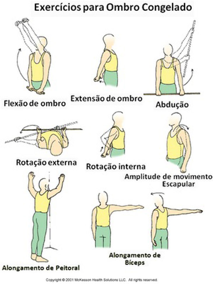 1) Fase inflamatória: começa a inflamação. A dor pode ser leve no início desta fase, mas depois vai aumentando e causando dificuldade de movimentação no paciente. Chega a ser uma dor insuportável e totalmente limitante. Ela é diferente das tendinites e bursites porque gera dor em qualquer movimento do ombro, enquanto as outras duas são em movimentos mais específicos. Essa fase pode durar até 9 meses.