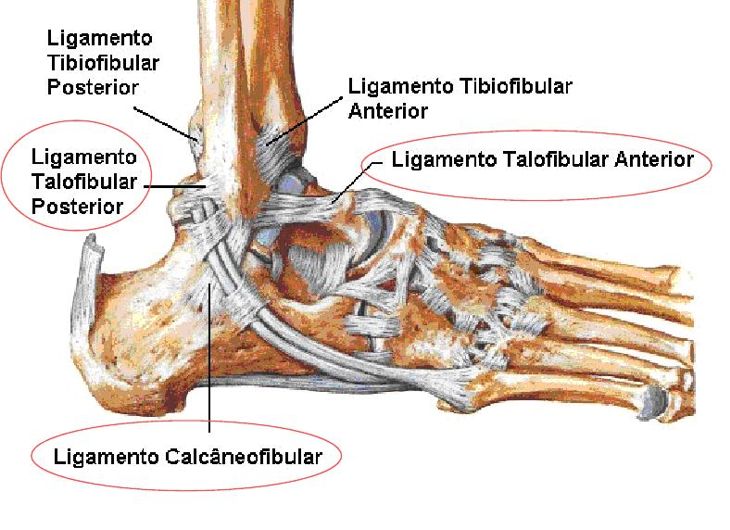 O tornozelo e o pé tem suas articulações protegidas por diversos ligamentos, como mostrado na figura abaixo, mas três são mais importantes na estabilização lateral do tornozelo: Ligamento Talofibular Anterior, Ligamento Talofibular Posterior e Ligamento Calcâneofibular.