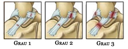 A entorse pode ser classificada em 3 graus, conforme a gravidade da lesão: