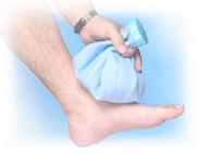Local da aplicação de compressa de gelo – na frente do tornozelo