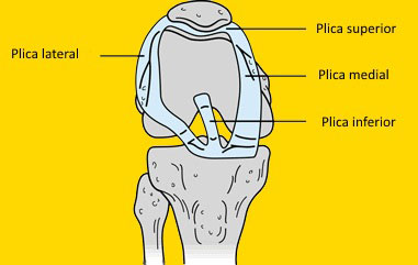 Existem quatro tipos de plicas sinoviais no joelho: a suprapatelar (acima da patela – a mais freqüente em dores ), a medial, a infrapatelar (abaixo da patela) e a lateral (esta, raríssima em acometimentos patológicos).