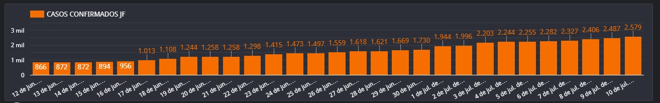 De acordo com a nota, no dia 20 de junho, Juiz de Fora tinha 1258 casos confirmados e, segundo com a Prefeitura de Juiz de Fora, registrava 46 vidas perdidas. Estes números evoluíram para 2244 confirmados e 63 óbitos no dia 4 de julho, representando aumentos de 78,4% e 37%, respectivamente. Na 27ª semana epidemiológica (28 de junho a 4 de julho), Juiz de Fora atingiu o recorde semanal desde o início da pandemia, com 626 novos casos.
