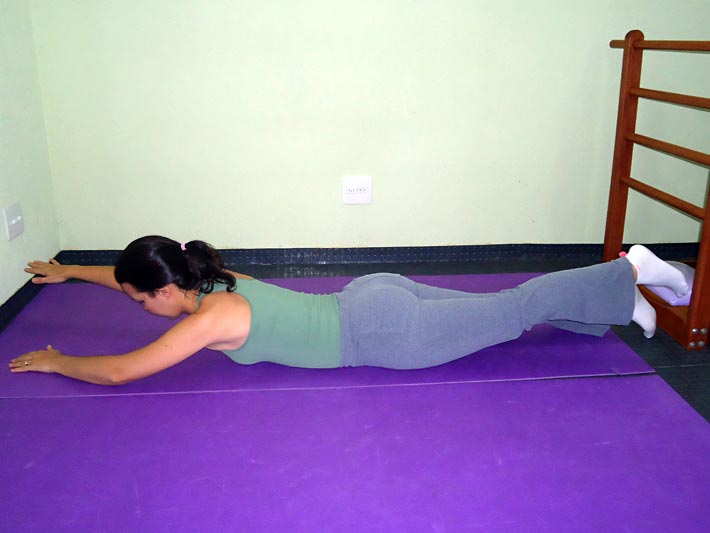 - Mantenha a perna esquerda e o braço direito elevados o máximo possível e depois faça o mesmo, simultaneamente, com a perna direita e o braço esquerdo;