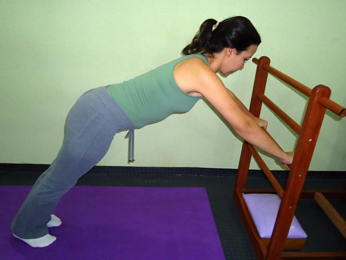 - As fotos (ver galeria) demonstram duas posturas mais fáceis de serem realizadas. Uma com as mãos apoiadas na parede e a outra pode ser feita em qualquer local inclinado e firme (como, por exemplo, em uma cama).