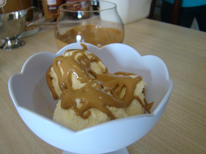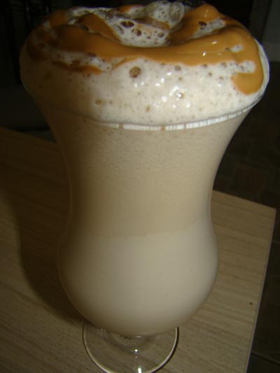 <b>Ingredientes:</b>  - 1 copo de leite integral bem gelado; - 1/2 copo de creme de leite fresco; - 2 colheres de sopa de Café Caramello; - 1 pitadinha de Nós moscada; - Algumas gotinhas de Essencia de Baunilha;  <br> <br> <b>Preparo:</b> Agitar em uma Coqueteleira de inox já resfriada. Vale a pena experimentar.   Ingredientes: 200ml de leite 1 colher de sopa de creme de café <br>  <br> Preparo: misture os ingredientes;   Ingredientes: 3 bolas de sorvete de creme; 2 colheres de sopa de creme de café; <br>  <br> Preparo: Sirva as bolas de sorvete de creme e cubra com o creme de café;    Ingredientes:   2 bolas de sorvete de creme;   100ml de leite;   5 pedras de gelo;   2 colheres de creme de café;    <br>  <br> Preparo: Bata todos os ingrediente no liquidificador.