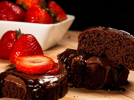 Pesquisando uma receita de bolo sem lactose para ter mais uma opção para o lanche, encontrou uma na internet. Fez algumas modificações e ensina no Só Sabor dessa semana. A receita é de bolo de chocolate com calda de chocolate. Aproveitando que a temporada do morango está começando, Laura fez uma calda da fruta e acrescentou. Além de dar charme ao bolo, deixou-o ainda mais gostoso.
