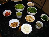 "A pessoa pode fazer a salada da forma mais balanceada que desejar. A quantidade dos ingredientes varia conforme as porções desejadas. E não há hora para consumir. Crianças e adultos aprovam o prato. Os ingredientes são sofisticados e muito saudáveis", destaca Paula. O primeiro passo para a confecção é separar os ingredientes: alface, manjericão, orégano, nozes, queijo minas, frango, torradas, rúcula, cheiro verde, tomate cereja e molho especial. Para fazer a base da salada, Paula recomenda a utilização de uma vasilha para misturar o alface e a rúcula.