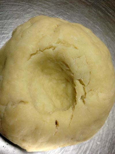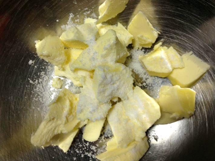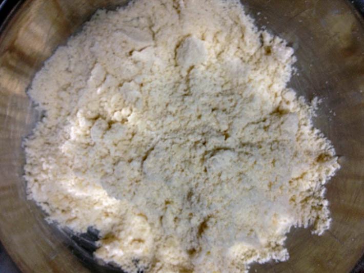 Escolhi o recheio de alho poró e cebola porque adoro a combinação dos dois, sobretudo, do sabor sutilmente adocicado quando salteados e depois assados. Mas vamos começar pela massa. Corte em cubos 75 gramas de manteiga gelada. Misture com ½ colher de sopa de sal e 1 ½ xícara de farinha de trigo até virar uma farofa. Acrescente de duas a três colheres de sopa de água gelada para dar o ponto. Não vai demorar muito para que a massa fique lisa e homogênea, sem despedaçar.