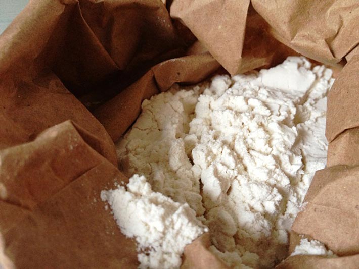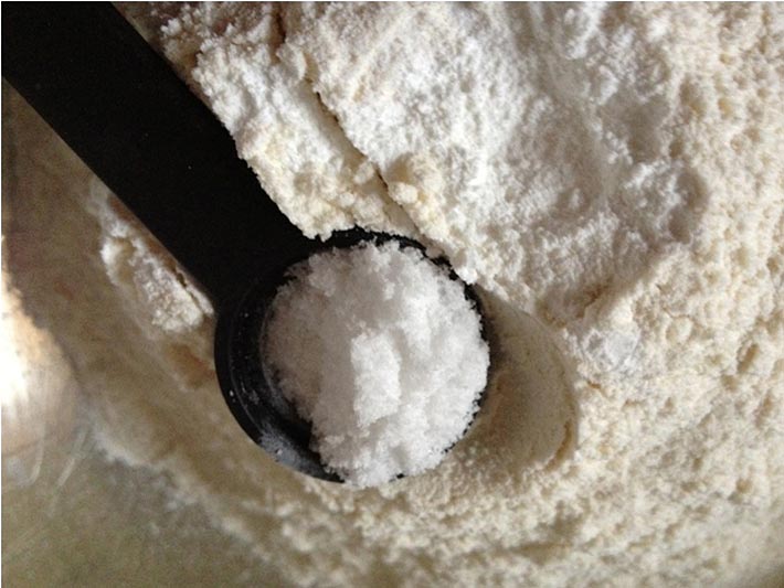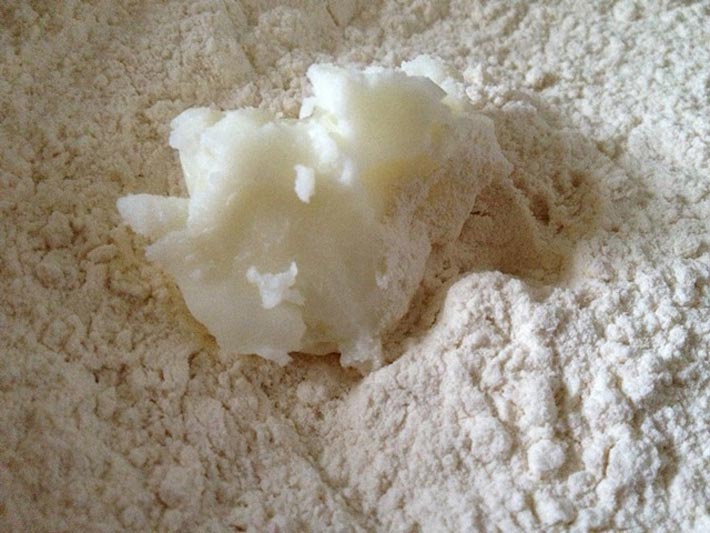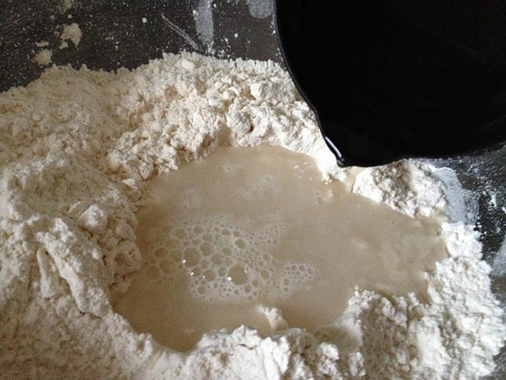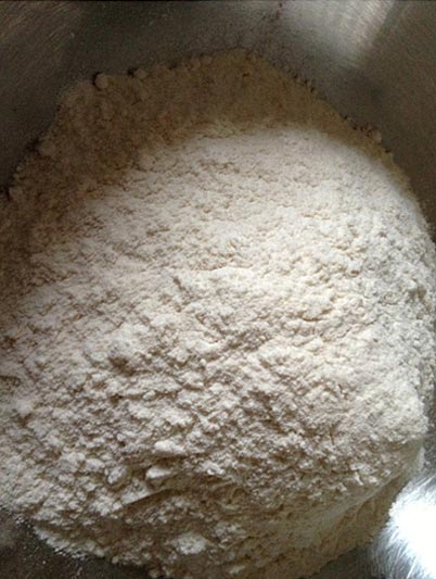 Para fazer seis tortilhas, junte duas xícaras de farinha de trigo, uma colher de chá rasa de sal e uma pitada generosa de fermento. Misture tudo e depois acrescente meia colher de sopa de gordura vegetal. Após misturar bem a gordura na farinha coloque, aos poucos, entre ½ a ¾ de xícara de água morna.