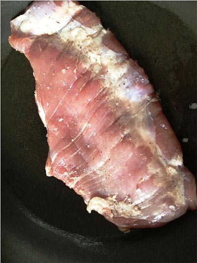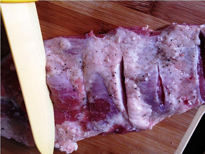 Tempere um quilo de costela de porco com pimenta do reino moída e sal grosso a gosto.