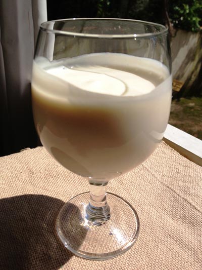 Apesar de ser evidente, o sabor da banana não fica forte. Já o iogurte dá a cremosidade necessária e ainda deixa um azedinho. A textura parecida com a do milkshake vem com o gelo batido. O creme de avelãs? Esse dá a coroa à nossa bebida. O bom (ou o ruim) é que seu sabor só aparece no final, dando aquele gosto de "quero mais".
