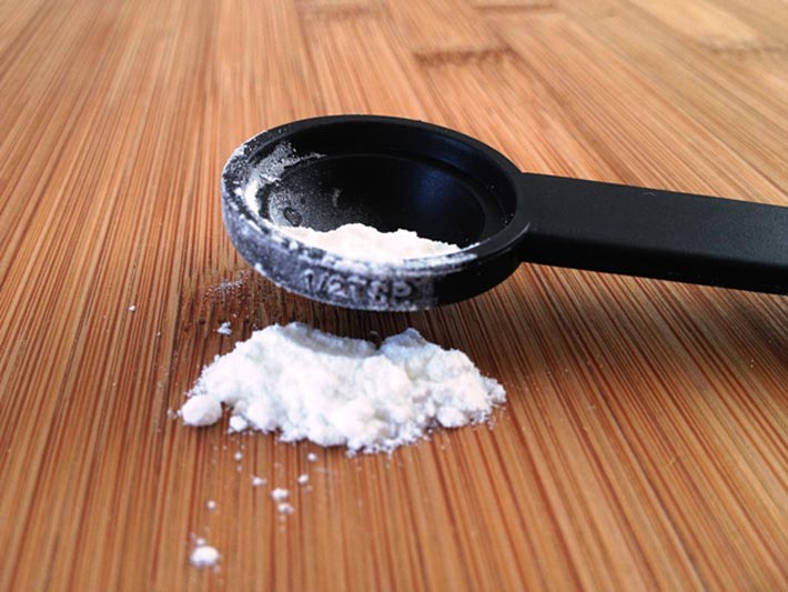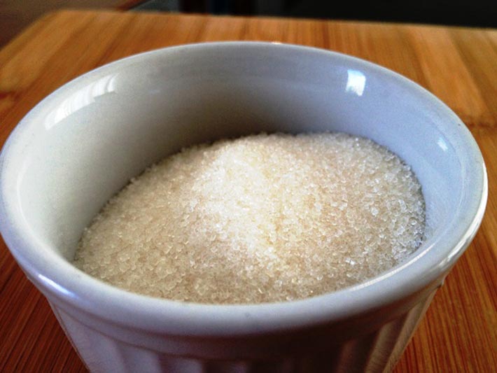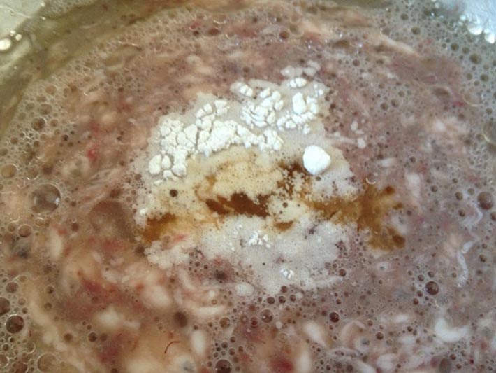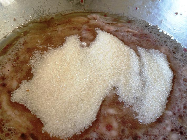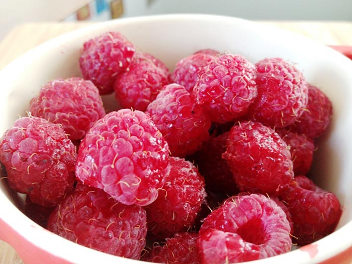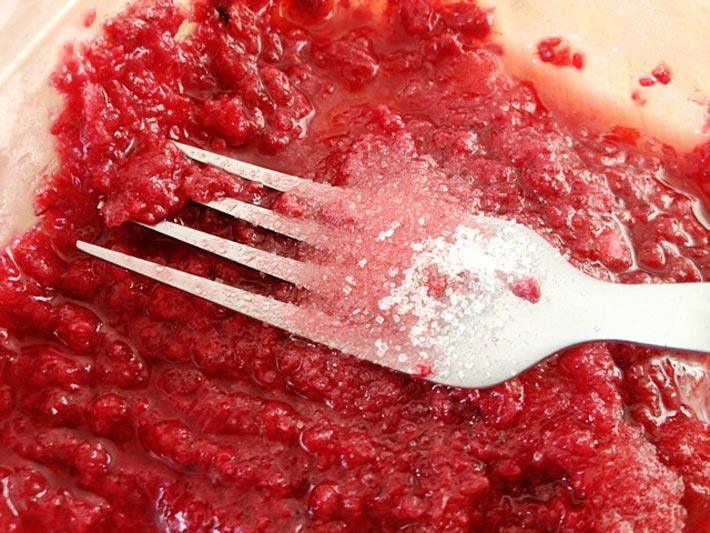 Com um garfo, faça um purê de duas colheres de sopa de framboesa. Salpique uma colher de chá de açúcar por cima e deixe descansando enquanto faz a massa.