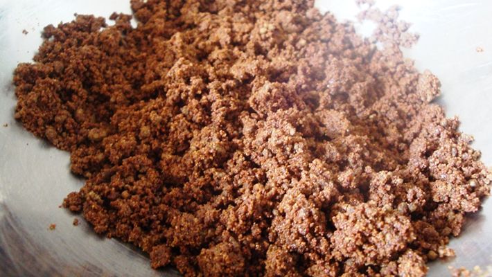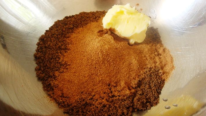 Enquanto isso, prepare o recheio de canela. Não tem segredo. É só misturar ¾ xícara de açúcar mascavo, três colheres de sopa de canela em pó e 1/3 de xícara de manteiga. Reserve.