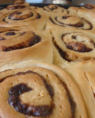 Rolinhos de canelaEu sou dessas pessoas que sobrevivem sem o café da manhã. Com o início dos dias sempre corridos, mal tenho tempo para comer antes de sair de casa. Isso não quer dizer que eu não goste de uma mesa bem farta logo cedo. Quando tenho tempo, nos finais de semana, gosto de preparar meu café. Afinal, é recompensador dar uma mordida em um pão preparado em casa e recém saído do forno.