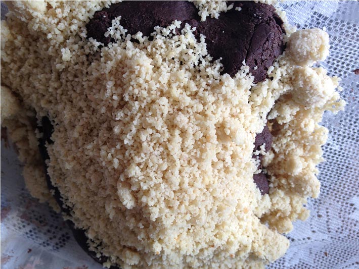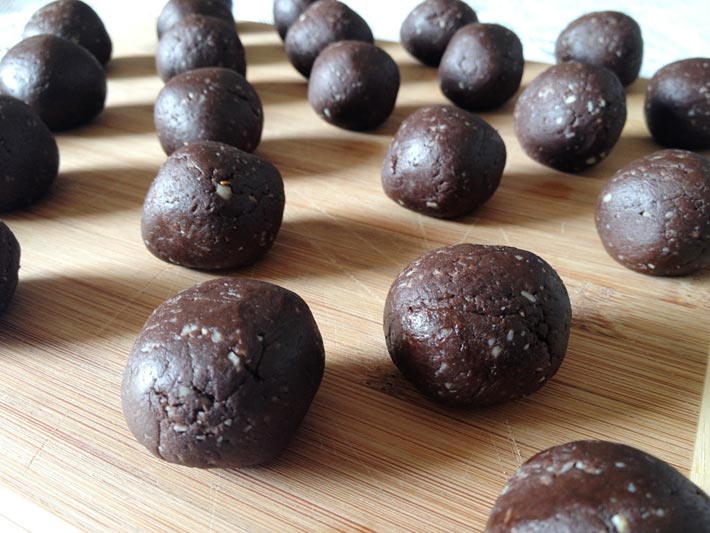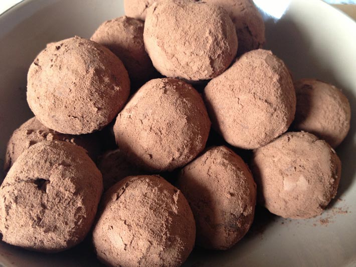 Enrole as trufas em ½ xícara de cacau em pó ou o quanto necessário.