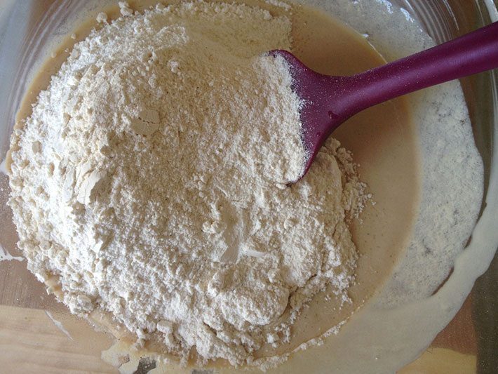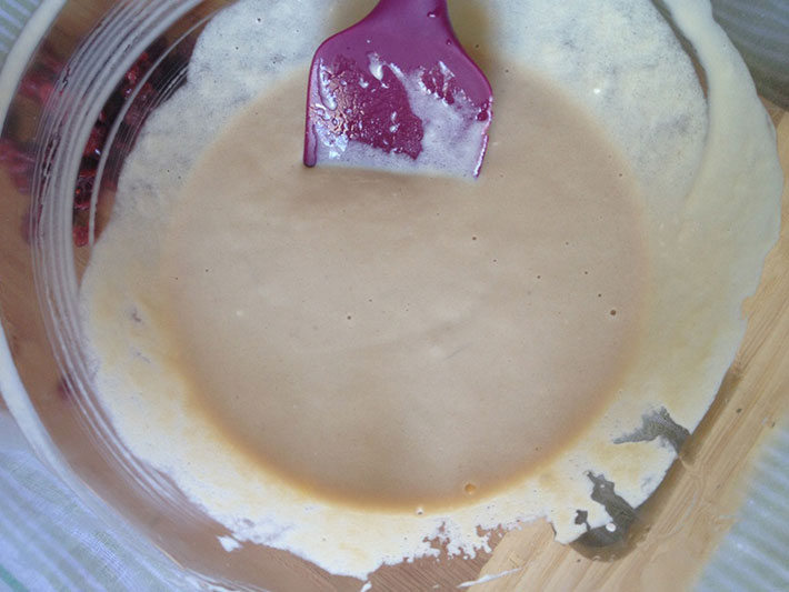 Agora junte as duas partes, misturando levemente até que estejam apenas combinadas. Não mexa demais.