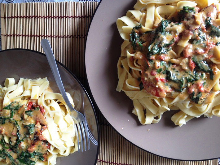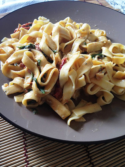 Talharim como Molho Rápido de Queijo e Espinafre