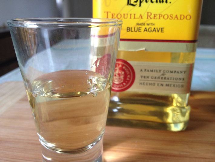 Transfira a mistura para um copo e acrescente uma dose de tequila.