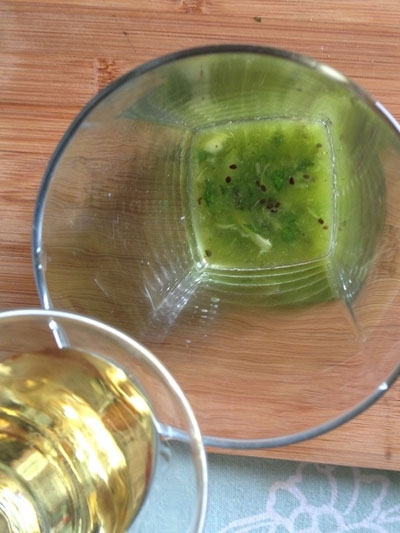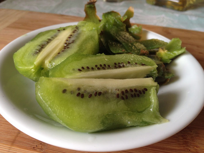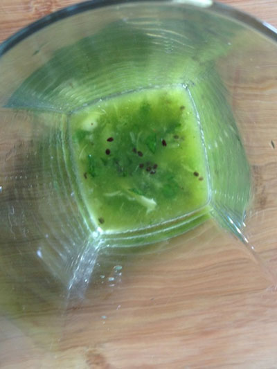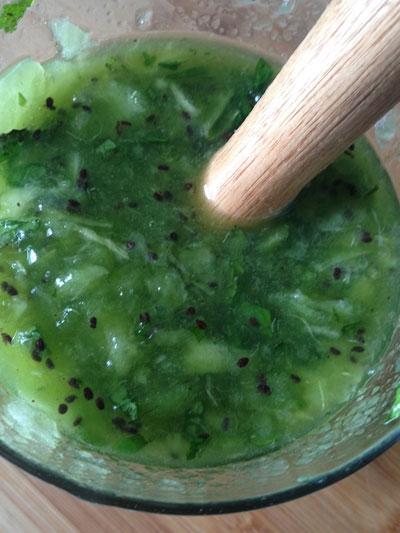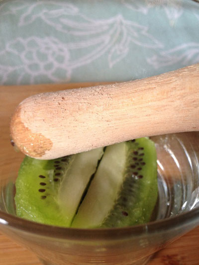 Macere bem até obter uma polpa sem muitos pedaços de kiwi.