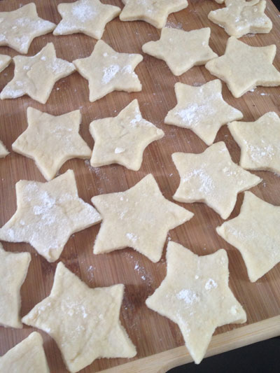 Leve ao forno para assar por 20 minutos. Enquanto isso, corte o restante da massa em qualquer formato que você preferir para fechar a torta depois.