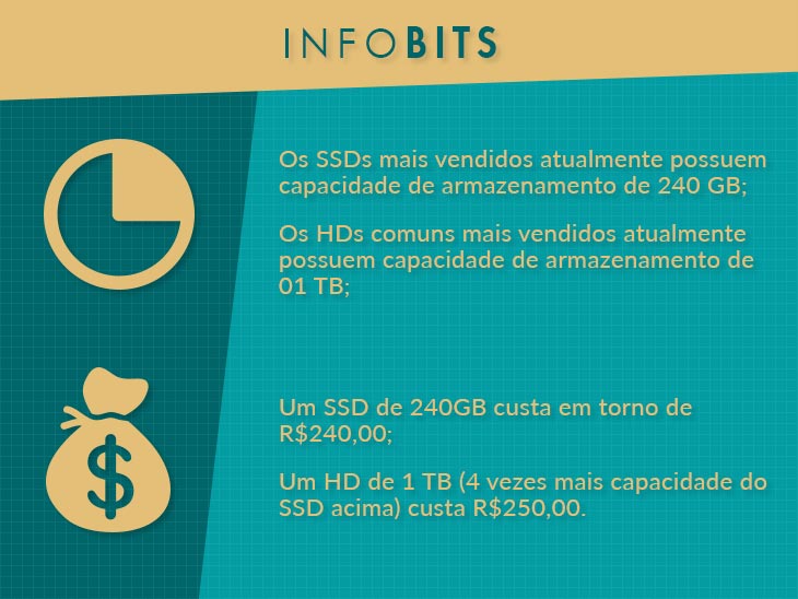Mas nem tudo são flores para o SSD. Os pequenos velozes ainda custam muito caro, com valores muito superiores que o dos HDs. A capacidade de armazenamento também é uma desvantagem, pois é menor em relação aos discos rígidos. De qualquer forma, eles são vistos como a tecnologia do futuro, pois esses dois fatores negativos estão sendo suprimidos com o tempo.