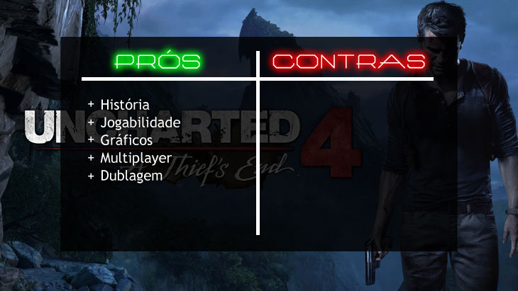 Uncharted 4: A Thief's End estará entre os concorrentes ao título de jogo do ano. É fácil afirmar isso porque a proposta simplesmente não é falha em nenhum momento. A história é muito boa, cheia de reviravoltas. O vilão é enigmático, há surpresas preparadas pela desenvolvedora durante o jogo e os gráficos são os mais perfeitos que já vi ao jogar um game. Uncharted 4 é um item obrigatório para um dono de um Playstation 4 e, certamente, fará aqueles que não são fãs buscarem um console para jogar essa maravilha. Atenção! O texto contém poucos spoilers da história do jogo!