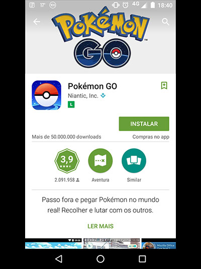 Alguns usuários já conseguem visualizar o jogo Pokémon Go para baixar no Brasil pelas plataformas iOS e Android. A ACESSA.com fez testes às 18h45 e o game mobile está aparecendo como disponível para download. Niantic, desenvolvedora do game para telefones e tablets com iOS e Android, publicou tuíte nesta terça-feira, 3 de agosto, dizendo que a empresa estava trabalhando duro para lançar o game no Brasil.