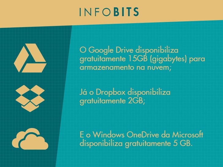 O Google Drive é uma das principais ferramentas para guardar arquivos na nuvem. Ele disponibiliza gratuitamente 15GB de armazenamento total (este espaço é compartilhado com a sua conta Google: Gmail, Google Fotos, Google sites, etc), podendo expandir para até 30TB no plano pago. O espaço cedido gratuitamente é mais que suficiente, a não ser que você tenha arquivos muito grandes para armazenar e utilize a plataforma para um uso profissional específico.