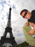 Em homenagem à sua mãe, que aniversariava na data, o viajante seguiu para Paris, fazendo o caminho inverso no Eurotúnel. "Ela adora Paris e resolvi percorrer todos os pontos da cidade fazendo fotos com o cartaz: Feliz Aniversário"