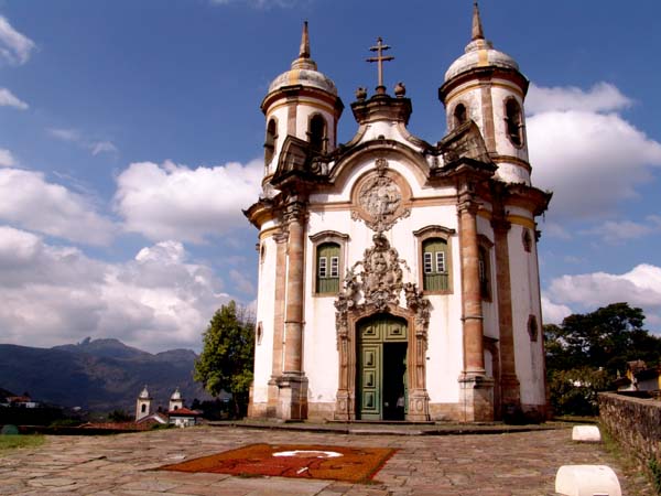 Regados a ouro, principal motivo da ocupa??o de europeus e escravos nas Minas Gerais, os templos cat?licos tornam-se salas de arte, seja com as bel?ssimas pinturas de teto ou com esculturas e fachadas, muitas delas feitas por Emanuel Ataide e Aleijadinho.