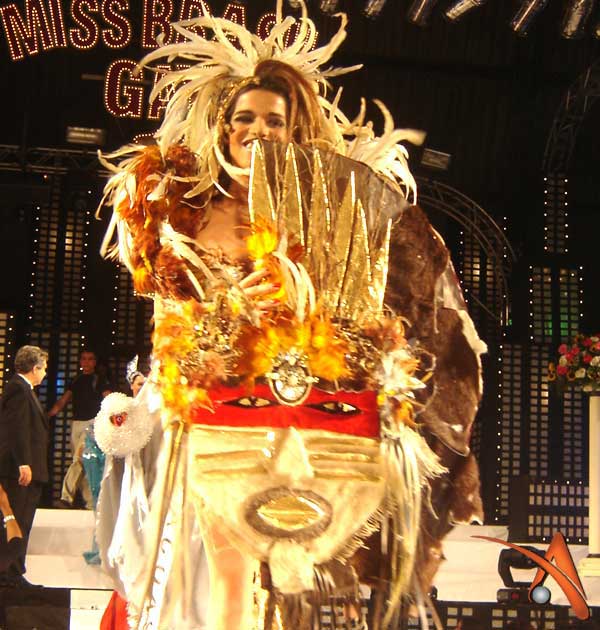 Vestido t?pico: "Representando os ?ndios caet?s, custou R$ 10 mil"