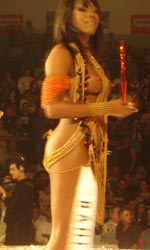 Layla trocou de roupa no palco, e para a surpresa do p?blico, ficou semi-nua e mostrou o corpo que lhe garantiu o t?tulo.
