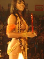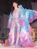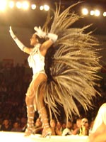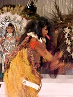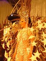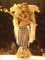 Houve at? o paradoxo da roupa sem roupa, que tanto se falou. Layla Kenn, a nova Miss Brasil Gay 2006, ao simbolizar uma ?ndia mais velha da tribo que passava conhecimentos para a mais nova, se transformou e apresentou seu traje t?pico: um belo corpo moreno semi tampado com colares e adere?os ind?genas.
