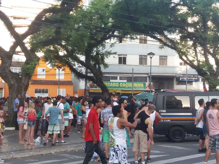 Segundo o comandante da 30ª Companhia da PM, capitão Herivelton Soares, seis pessoas foram conduzidas à Delegacia até às 20h30. "Três adolescentes se envolveram em lesão corporal, uma facada. Há a suspeita de que eles são envolvidos com gangues. Nesse momento, eles se encontram na delegacia. Outros três maiores foram conduzidos por porte e uso de substância entorpecente, no caso, maconha", lista.